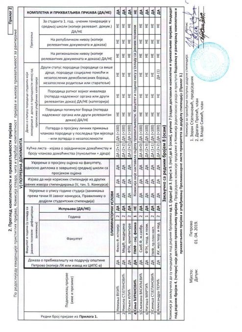 V.На основу проведеног поступка јавног конкурса, биће формирана Листа стручних правних и физичких лица за послове техничког прегледа објеката на период од двије године у складу са Законом о уређењу простора и грађењу. Са утврђене Листе стручних лица вршиће се именовање чланова Комисије за технички преглед објеката за сваки објекат појединачно. Достављена документација уз пријаву остаје у интерној евиденцији органа и не враћа се подносиоцу.